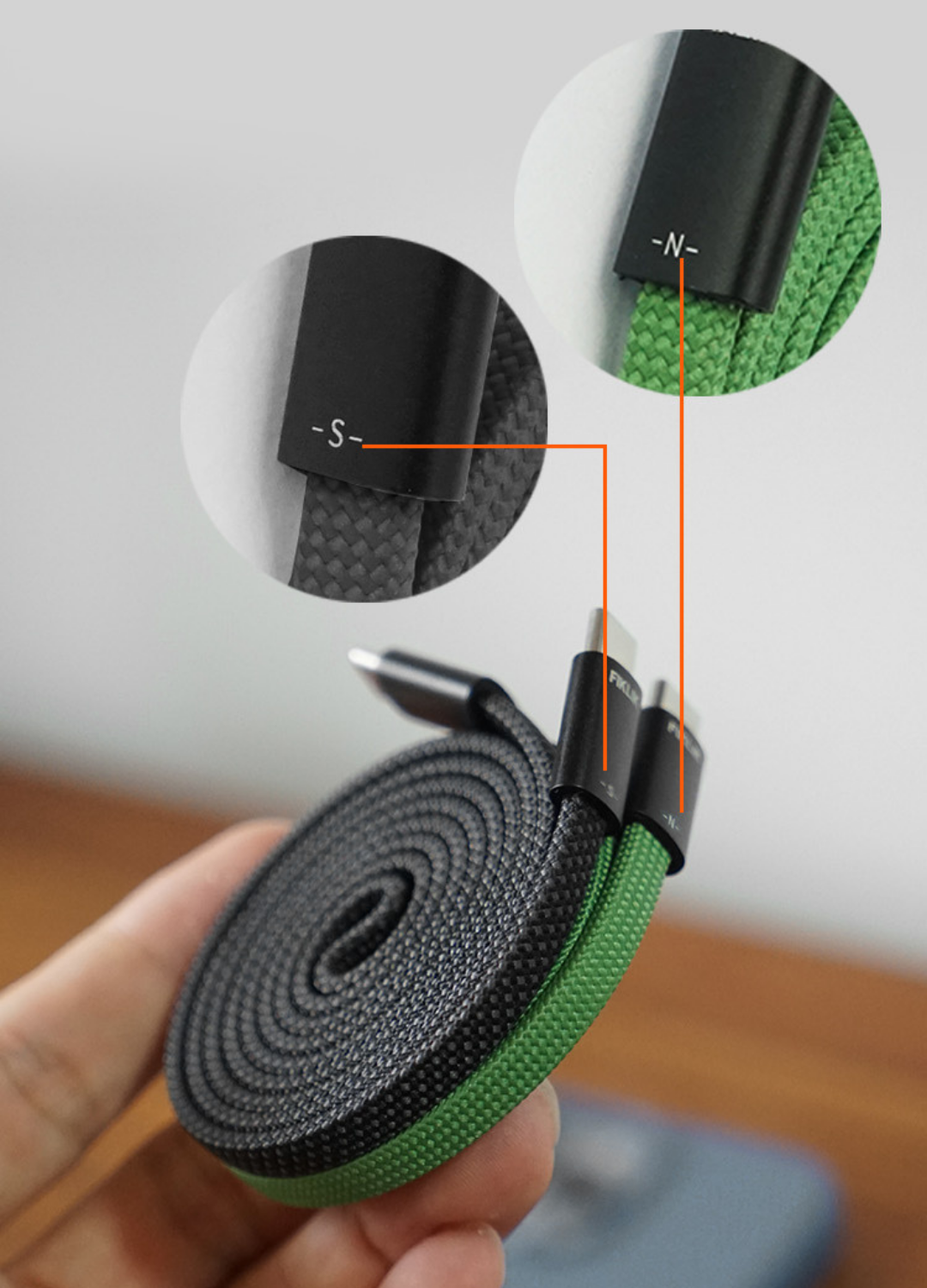 磁石内蔵ケーブルには「S極タイプ」と「N極タイプ」があります。