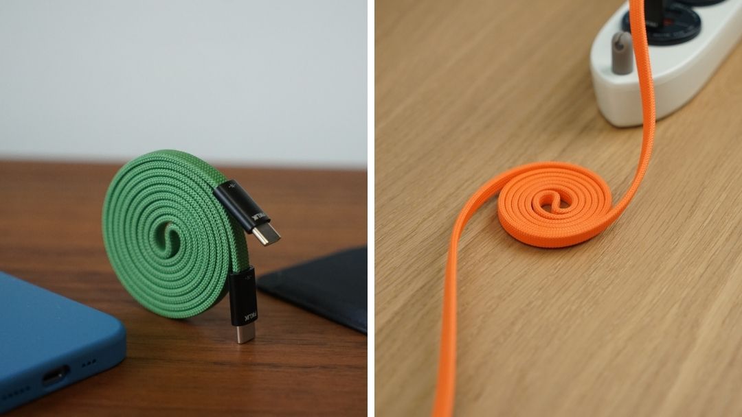 ケーブルが平らなフラット形状なので、巻いても厚みが出ずスッキリ収納。
